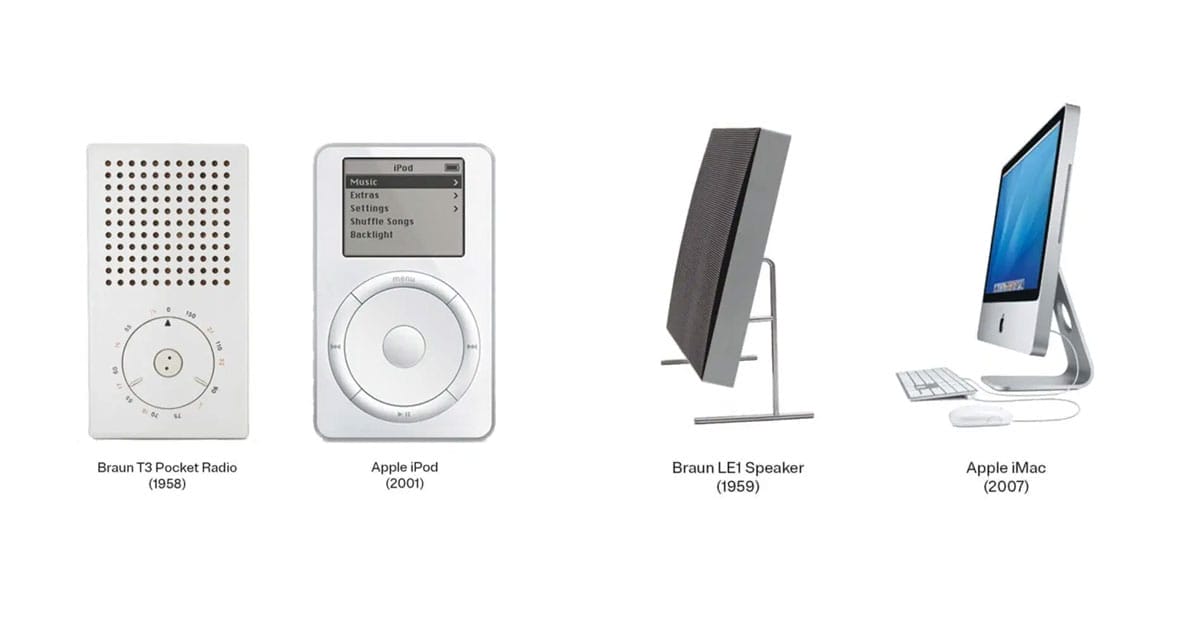 - Apple (Mỹ): Jonathan Ive, người đứng sau iPhone, MacBook, từng nói: “Rams là nguồn cảm hứng số 1.” iPod đầu tiên gần như là bản remix của radio Braun T3. Ứng dụng máy tính trên iOS? Gần như "copy" chiếc Braun ET66.