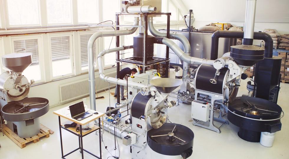 Robert (Kaffa roaster) và Trish Rothgeb rang các mẻ sáng màu tại Oslo năm 2000s