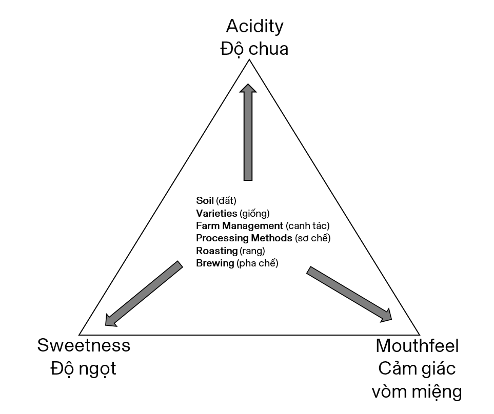 Ba yếu tố này không tồn tại độc lập mà tương hỗ nhau, tạo nên bản sắc cảm quan độc đáo cho mỗi loại cà phê.